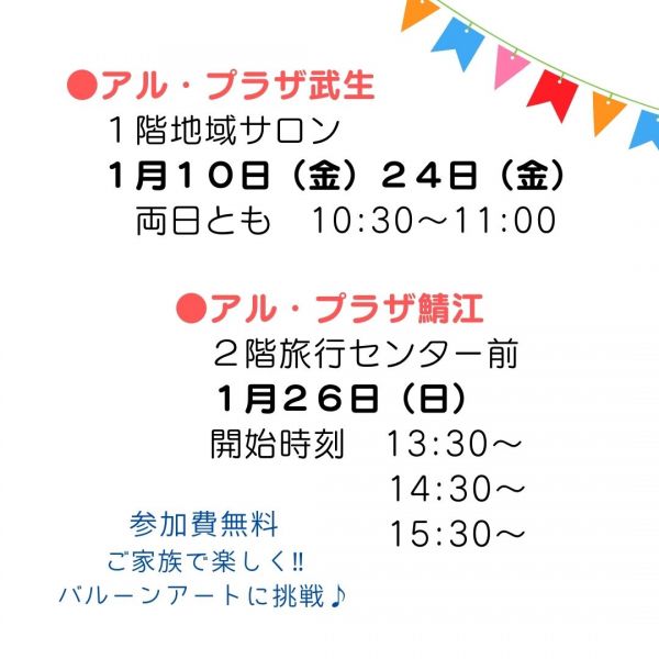 1月アルプラザ鯖江・武生わくわくバルーンアート♪