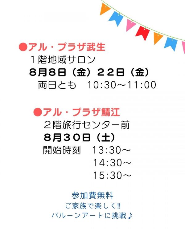 8月アルプラザ鯖江・武生わくわくバルーンアート♪