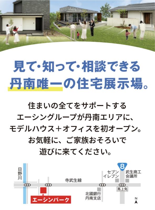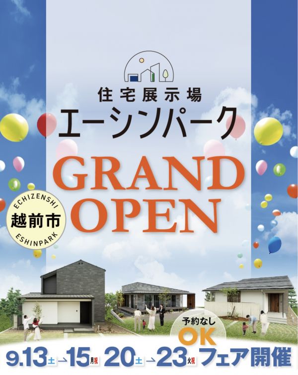 TEL. 090-9440-7414丹南エリア初の住宅展示場エーシンパークが越前市稲寄町に9月オープンします!